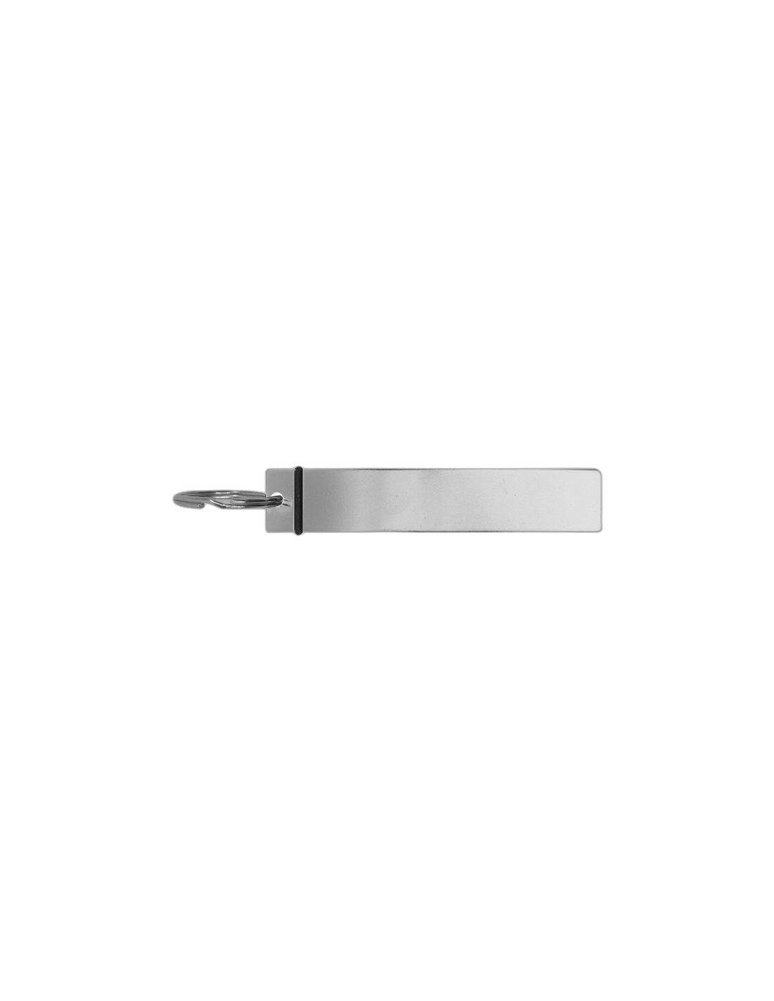 Llavero metalico que incluye destapador, con forma ergonomica. Material: aluminio. Tamano: 8 x 1.5 cm.